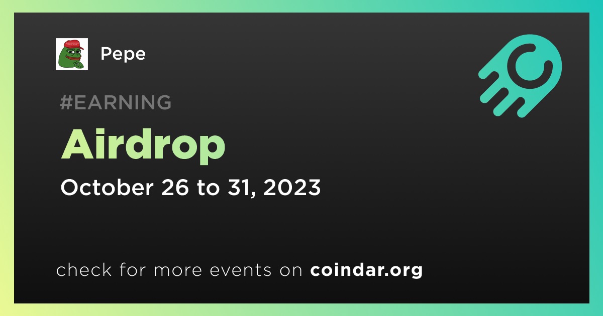 Pepe is conducting an airdrop event with a prize pool of 10,000,000,000 PEPE tokens. The event is set to commence on the 26th of October and will conclude on the 31st of October at 16:00 UTC.