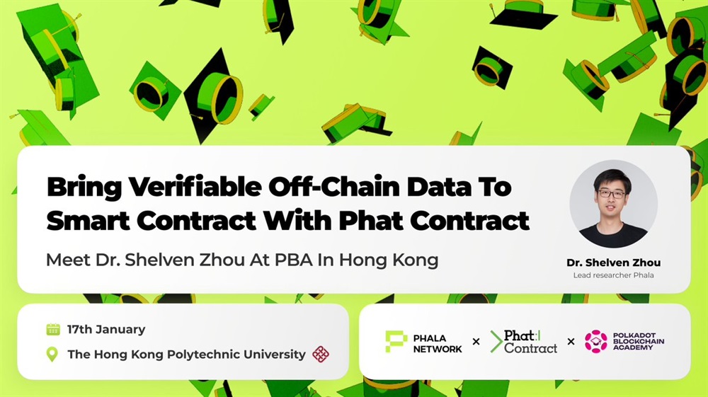 Phala Network’s lead developer, Shelven Zhou, will speak at the Polkadot Blockchain Academy in Hong Kong on January 17th. The discussion will focus on the integration of verifiable off-chain data with smart contracts using Phat contract.