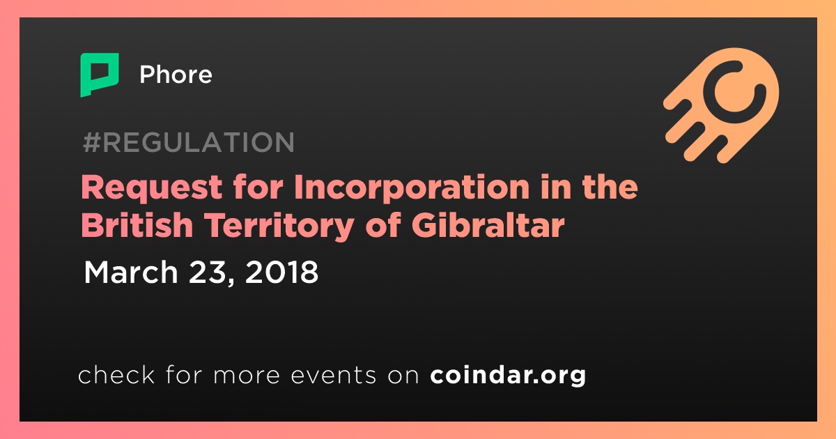Phore PHR: Request for Incorporation in the British Territory of Gibraltar