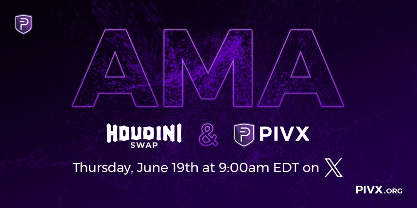 PIVX will conduct an AMA on X with Houdini Swap on June 19th at 13:00 UTC. The discussion is positioned as an official engagement between the project and its anonymity-focused partner.