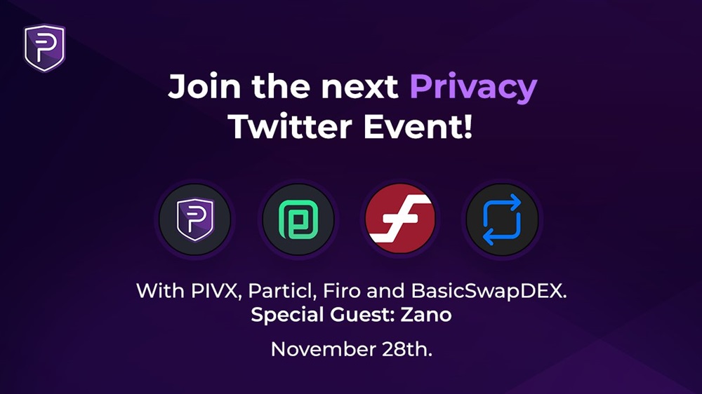 PIVX will host an AMA on X on November 28th at 14:00 UTC. The event will also feature other participants such as BasicSwap DEX, Firo, Particl, and a special guest from Zano Project. The discussion will revolve around various privacy topics.