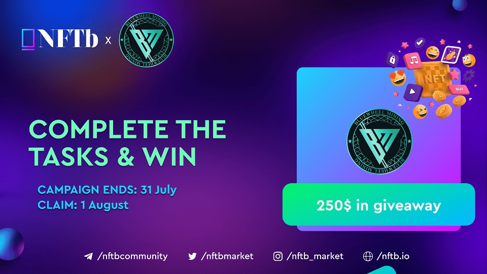 NFTb, in collaboration with Bluewheel Mining, is organizing a giveaway event. The event, which involves a giveaway of $250, is scheduled to end on July 31st with the claim date set for August 1st.