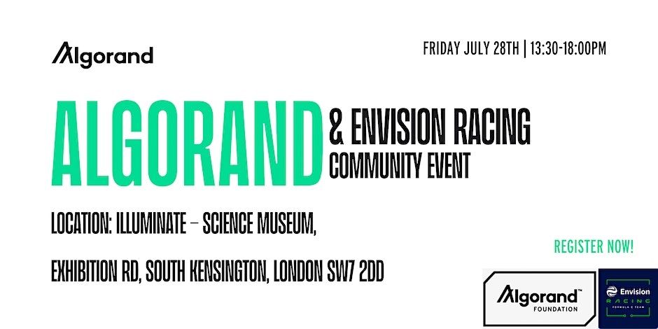 Algorand UK (Official) and Envision Racing are joining forces to host another community event, this time in #London, marking the end of the season this weekend 🇬🇧🏎️