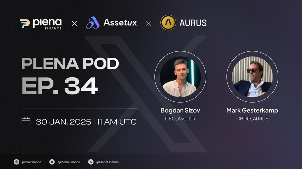 Plena will host an AMA on Telegram on January 30th at 11:00 AM UTC. The event will explore the intersection of DeFi, NFTs, and tokenized assets in collaboration with Assetux and AURUS.