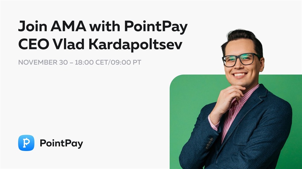 We're announcing AMA session with PointPay CEO, Vladimir Kardapoltsev! On november 30th, we'll be hosting a live broadcast on our YouTube channel at 18:00 CET or 9:00 PT.