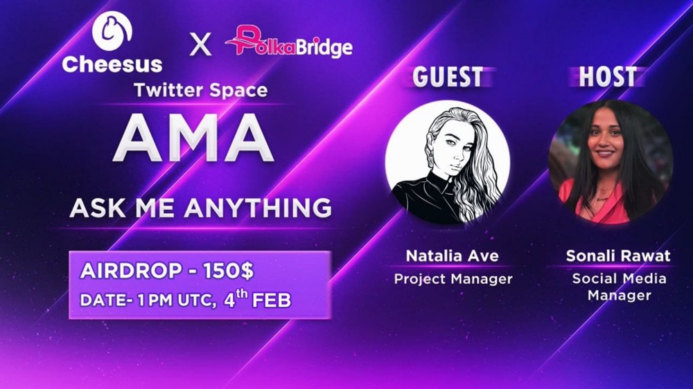 📢 Join us today for the Twitter Space AMA with Natalia Ave, Project Manager of @CheesusDeFi