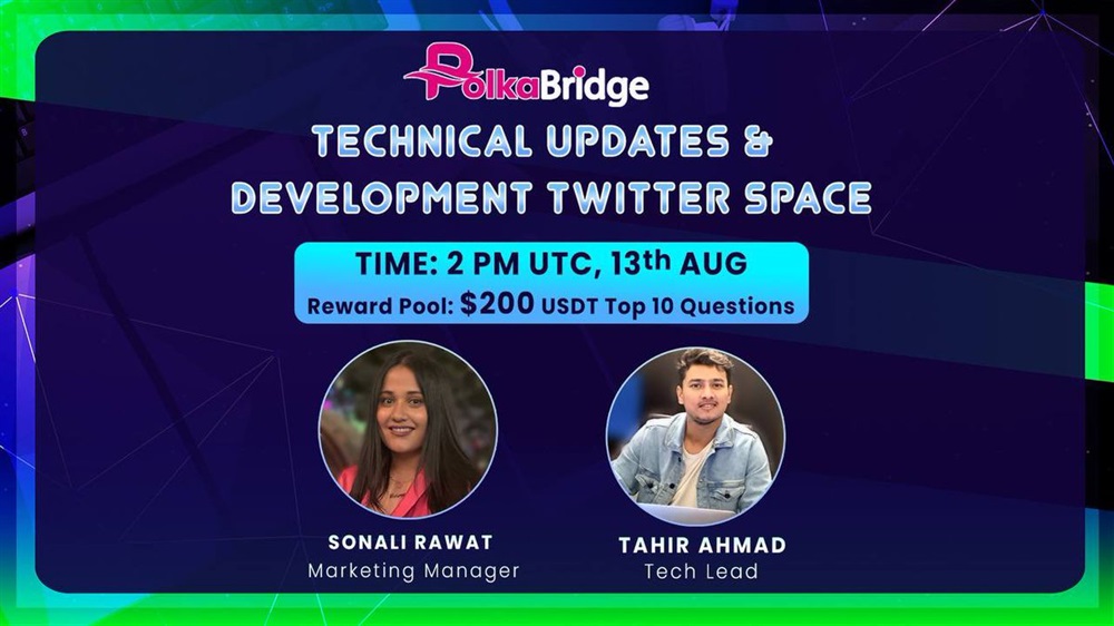 Join our Marketing Manager, @Sonali_Rawat12 and Tech Lead, @tahirahmadin on " #PolkaBridge Technical Updates and Development"