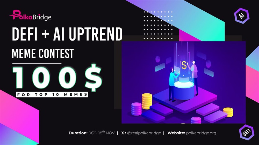 PolkaBridge is organizing a meme contest with a theme revolving around the integration of AI in blockchain. The contest is designed to encourage creativity in the depiction of the DeFi and AI trend in the blockchain industry. The top 10 memes will share a reward pool of $100.