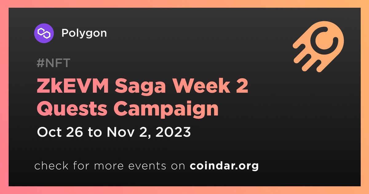 Polygon is set to resume its 2.0 zkEVM Saga with NFT prizes from October 26th,12 pm UTC to November 2nd.
