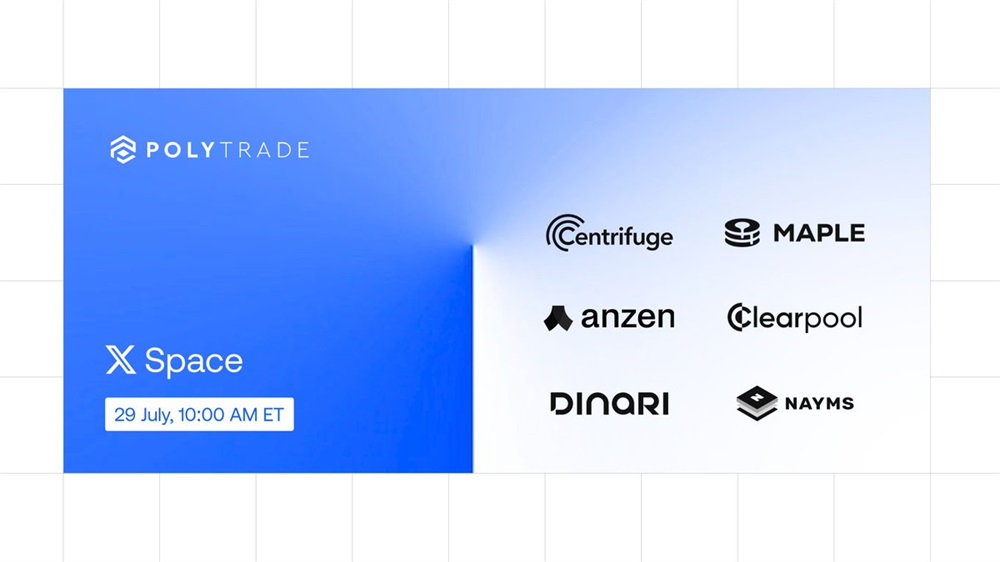 Polytrade will host an AMA on X on July 29th at 14:00 UTC. The participants of the event include Centrifuge, Maple, Anzen, Clearpool, Dinari, and Nayms.