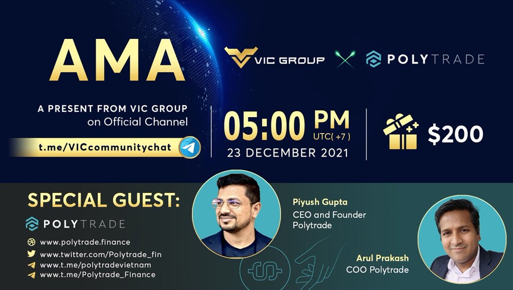 @Polytrade_fin with @VIC_Vietnamese is organizing #AMA today for #vietnamese fam at 5:00 pm UTC+7. Tune in to learn more about #DeFi lending protocol on @0xPolygon, upcoming #Metaverse product, #mainnet launch in Jan. #Christmas 🎁reward upto $200 awaits you.