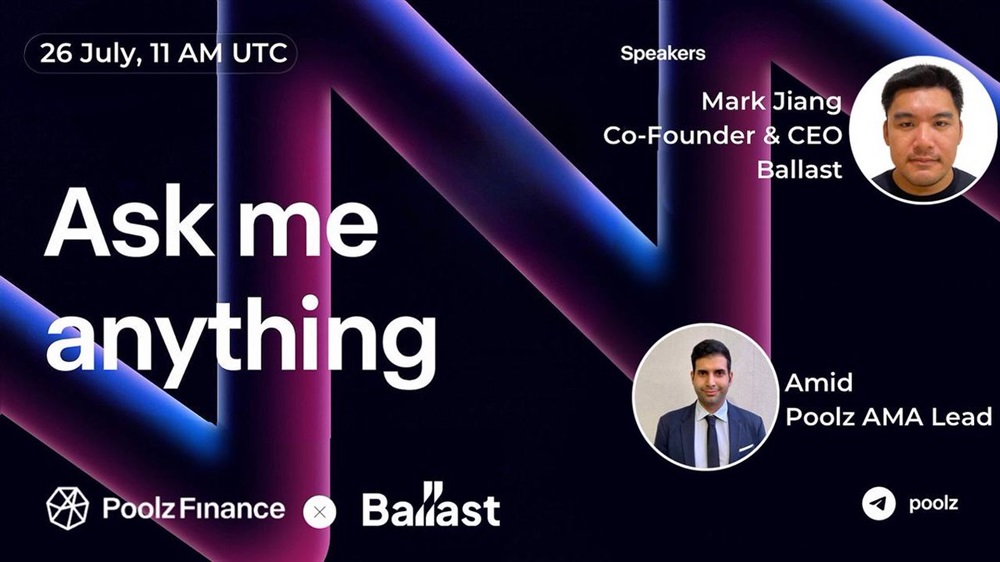 Poolz Finance will host an AMA with Ballast on July 26th at 11:00 UTC. The event will take place on Telegram. As part of the event, Poolz Finance will distribute $200 BUSD to the winners. Participants are required to follow Poolz Finance and Ballast on Twitter, and engage with the event post by liking, retweeting, and tagging three friends.