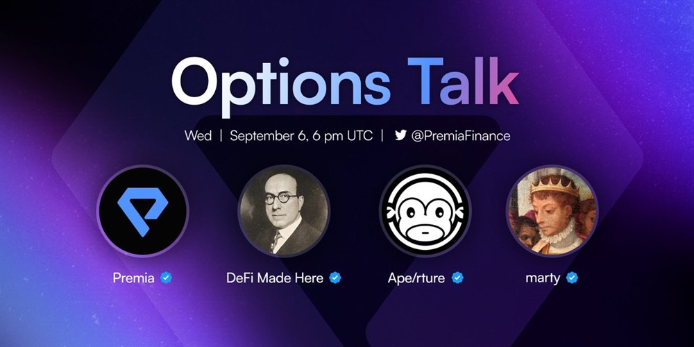 Premia will host an AMA on X on September 6th. The event will feature guests from Ape/rture and DeFi Made Here. The discussion will revolve around the current state of decentralized finance (DeFi), including protocols and news, as well as a market overview.