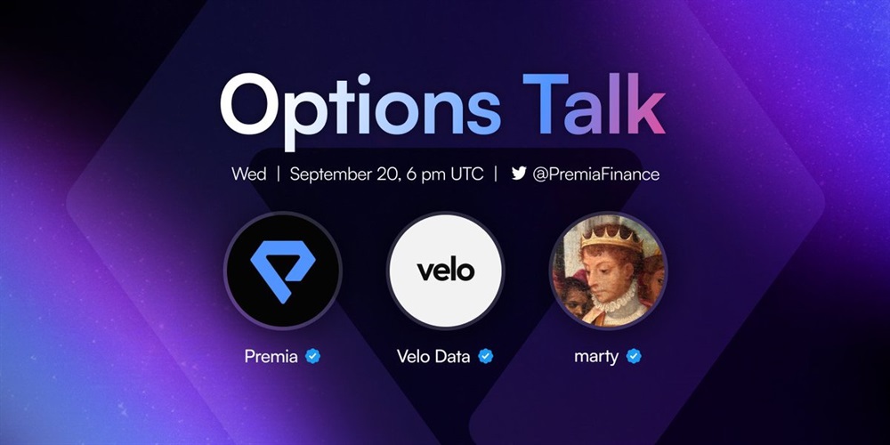 Premia will host an AMA on X on September 20th at 6 pm UTC. The upcoming episode will feature a discussion on Velo Data, options and futures, as well as the current state of the markets and alternative cryptocurrencies.