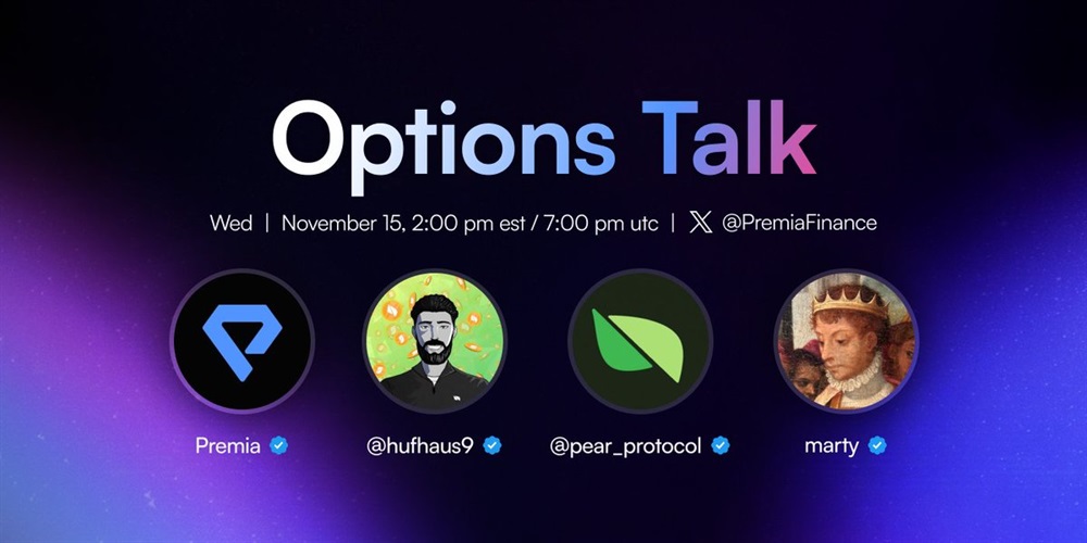 Premia will host an AMA on X on November 15th at 7 PM UTC. The conversation will revolve around the market outlook, the current state of volatility markets, and pear trading.