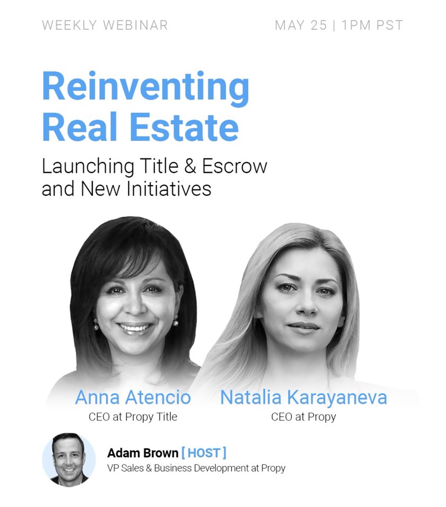 @AB_STL VP Sales & Business Development at Propy will host @NataliePropy, CEO at Propy and @AtencioAnna9, CEO at Propy Title.
