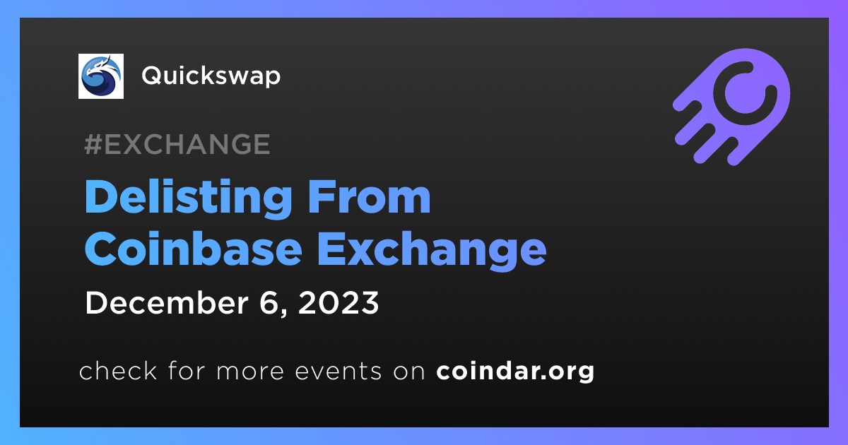 Quickswap to Be Delisted From Coinbase Exchange on December 6th