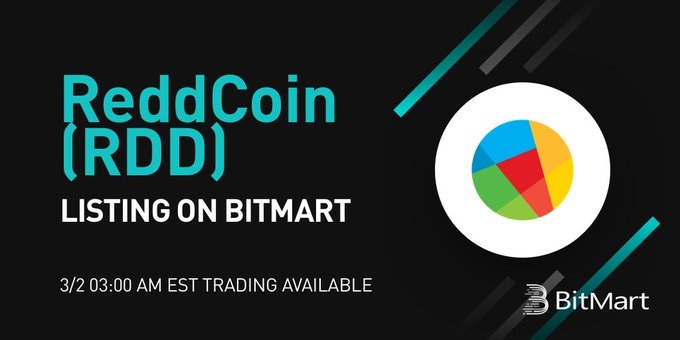 BitMart will be the 3rd largest among the exchanges where ReddCoin is listed