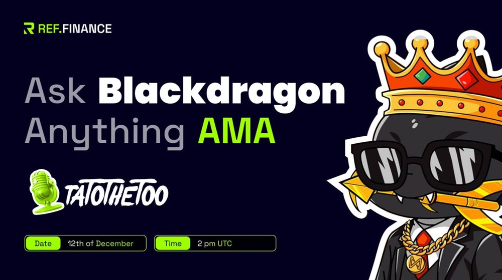 Ref Finance will host an AMA on Telegram on December 12th at 14:00 UTC. The event is expected to provide users with detailed insights into the Blackdragon ecosystem.
