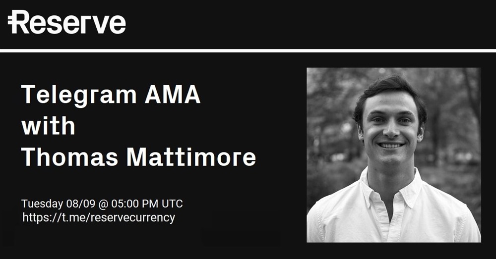 We'll be hosting a Telegram AMA with Reserve's Head of Platform Thomas Mattimore on Tuesday the 9th @ 05:00 PM UTC.