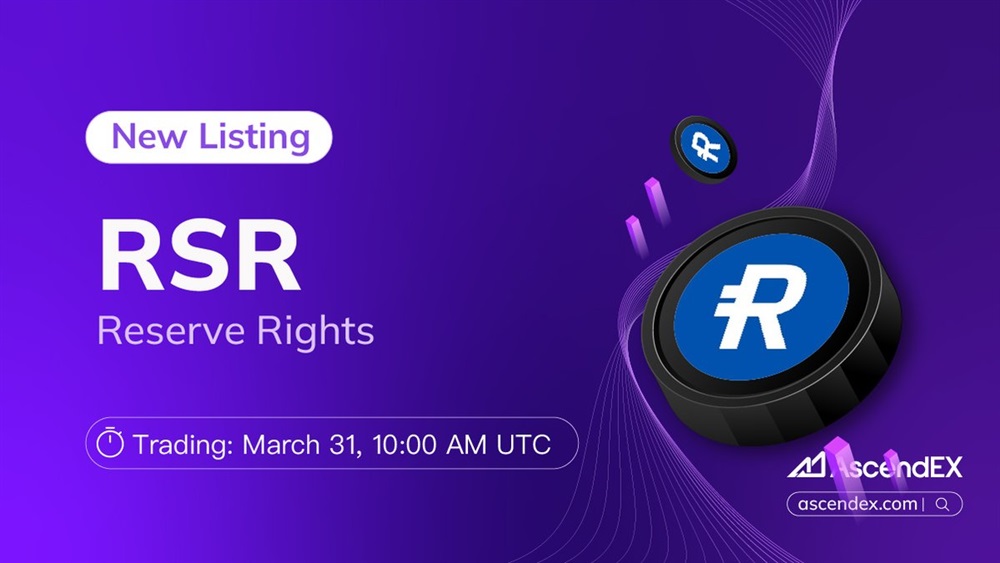 AscendEX will list Reserve Rights Token (RSR) on March 31st.