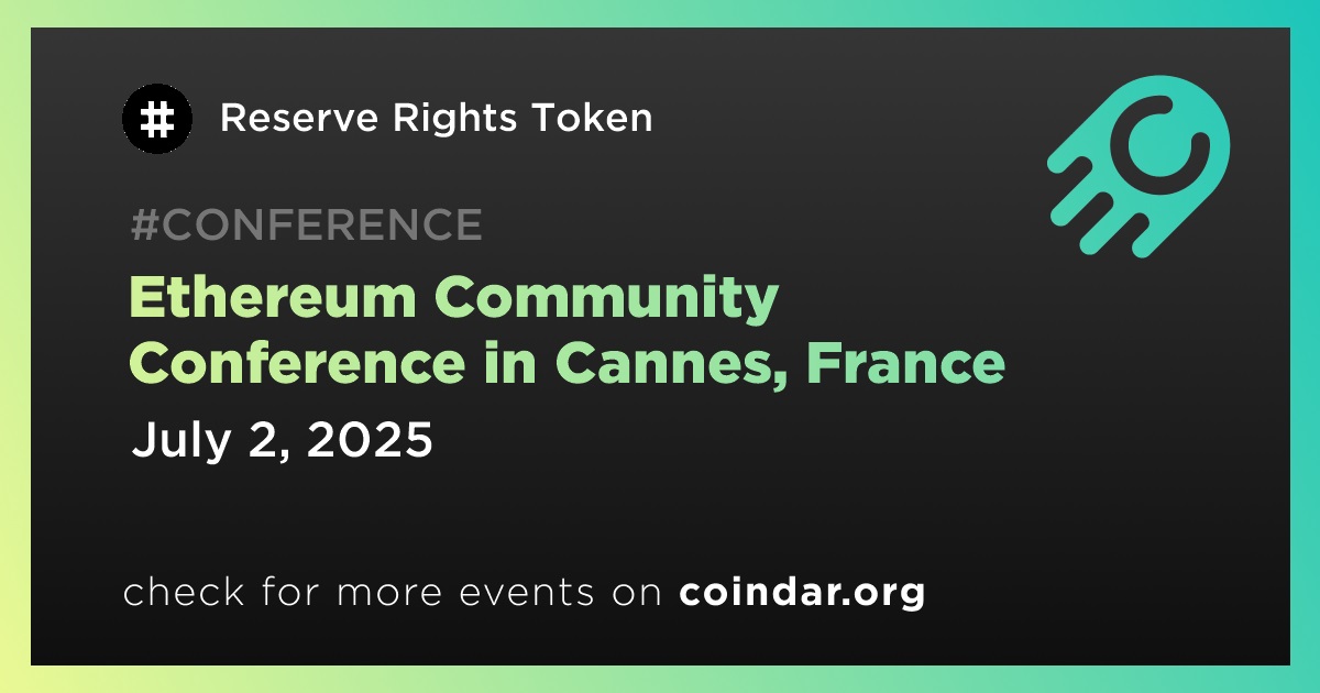 Reserve Rights Token will host a full-day program during the Ethereum Community Conference in Cannes, on July 2nd. The schedule runs from 07:00 to 19:00 UTC and features coworking sessions, DTF workshops and DeFi panels with speakers such as Ryne Saxe, Martin de Rijke and Matthew Fisher.