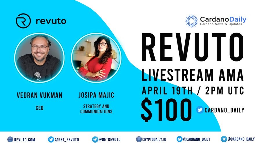 Don't miss #Revuto Livestream #AMA with @cardano_daily on April 19th at 2PM UTC🕗