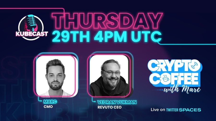 This Thursday, our CEO @v_vukman will talk about the partnership with @Kubecoin_ on #TwitterSpaces. Set your reminder and see you there.