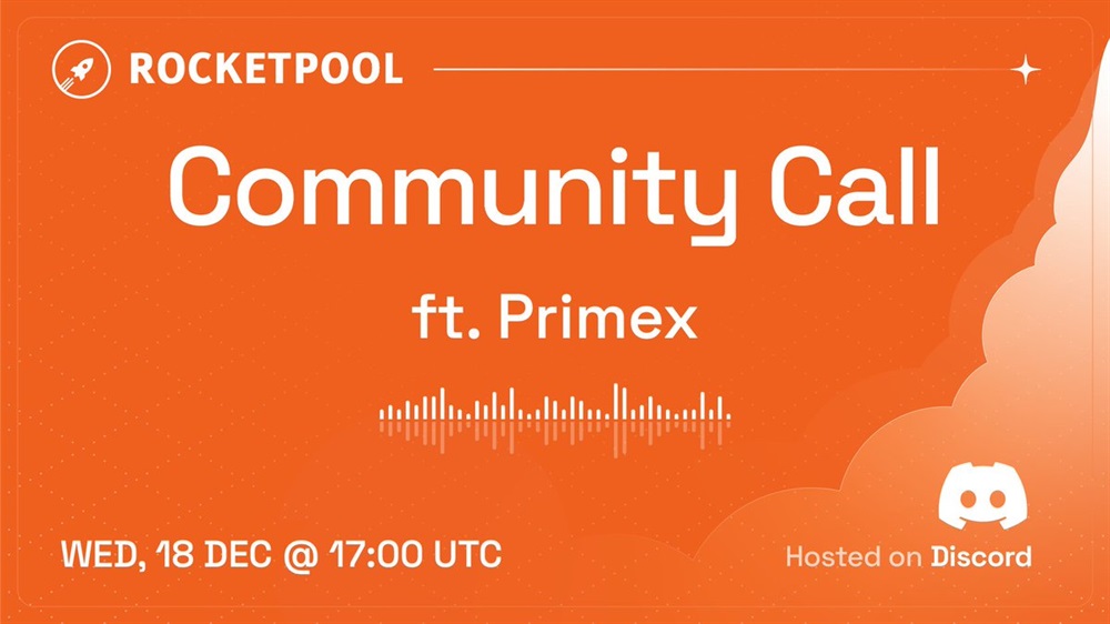 Rocket Pool will hold a community call on Discord on December 18th at 17:00 UTC. Primex Finance will participate in a session to discuss DeFi strategies for rETH.