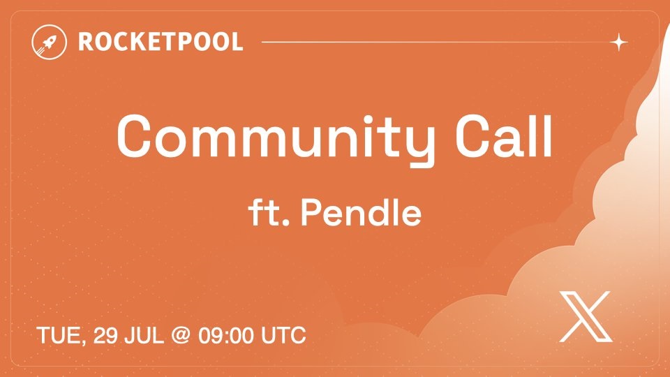 Rocket Pool will host a community call on X on July 29th at 09:00 UTC. The session will examine a new incentivised DeFi opportunity for rETH liquid stakers, featuring insights from Pendle Fi.