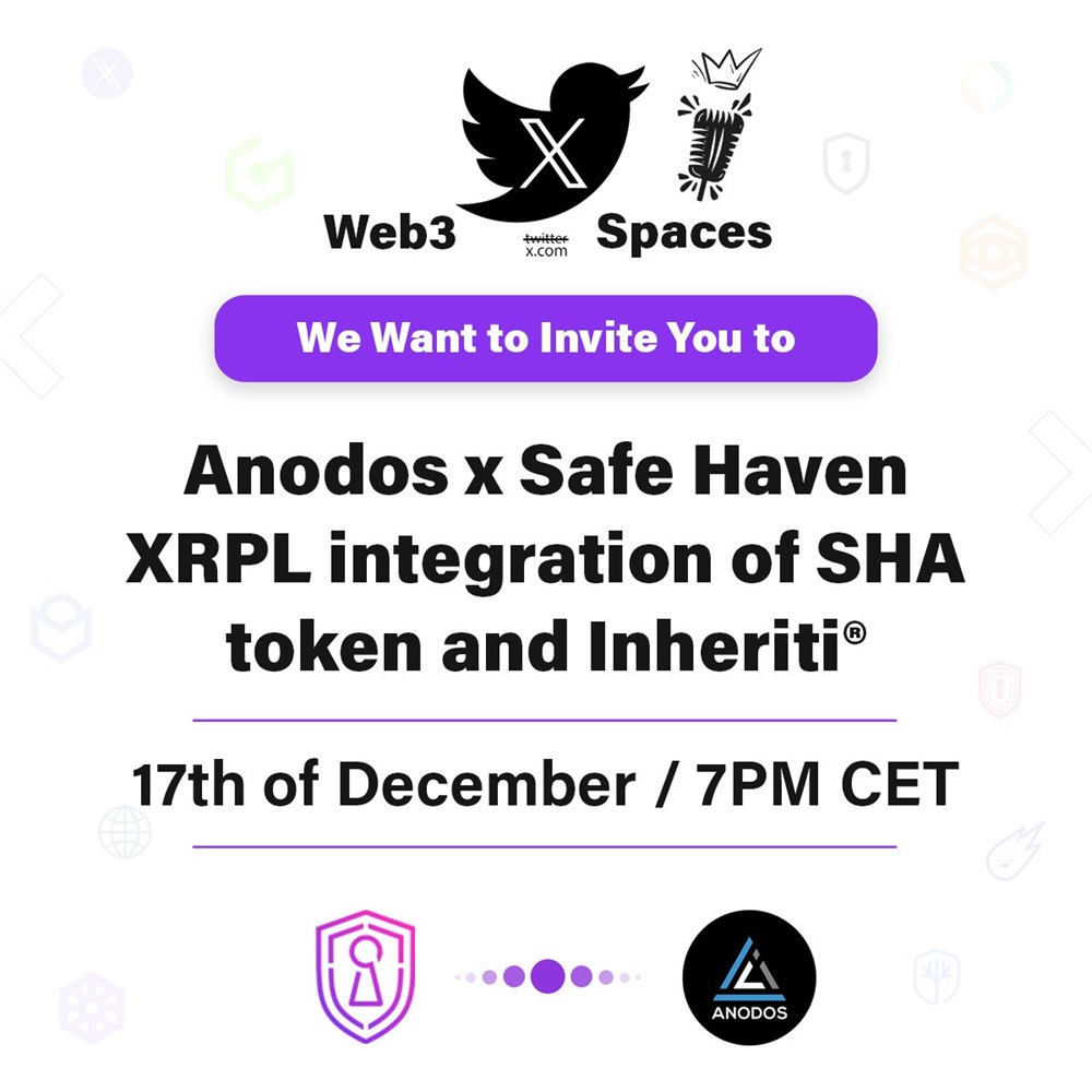 Safe Haven has announced a strategic alliance with Anodos. The details of this partnership will be discussed during an AMA on X on December 17th at 6 pm UTC.