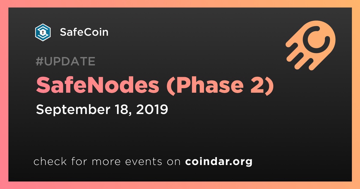 "Safecoin will be announcing SafeNodes Phase II on Wednesday, Sept 18."