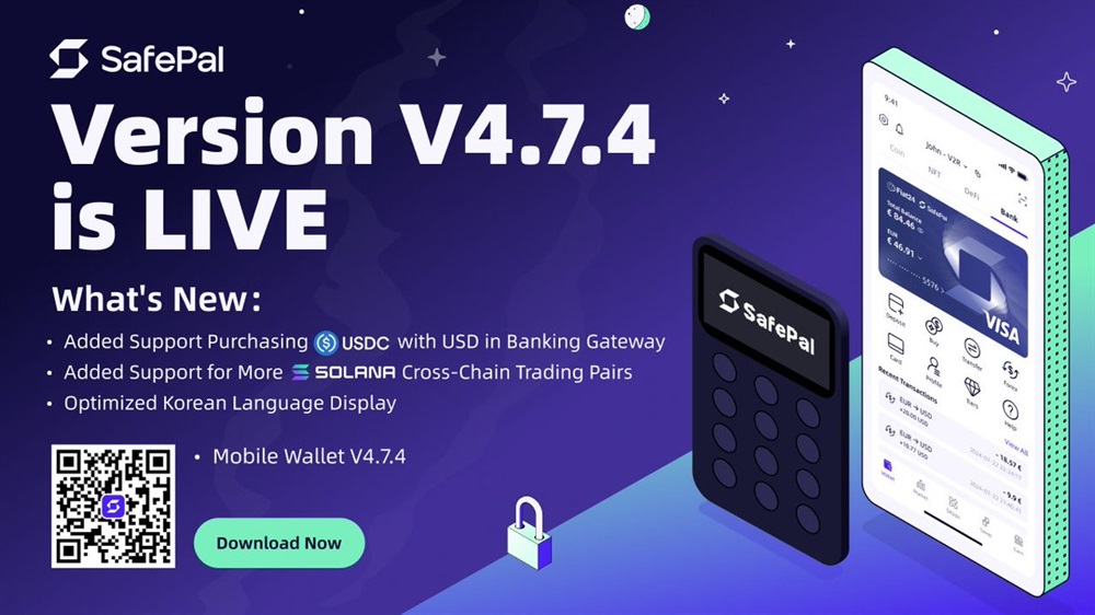 SafePal has released a new version of its crypto wallet app, v.4.7.4. The update includes the addition of support for purchasing USDC with USD in the banking gateway. It also includes support for more Solana Cross-Chain trading pairs. Furthermore, the Korean language display has been optimized.