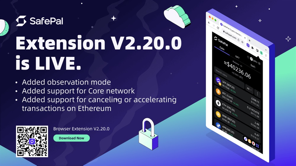 SafePal has released version 2.20.0 of its crypto wallet extension. This update introduces several new features including observation mode, support for the core network, and the ability to cancel or accelerate transactions on the Ethereum Foundation.