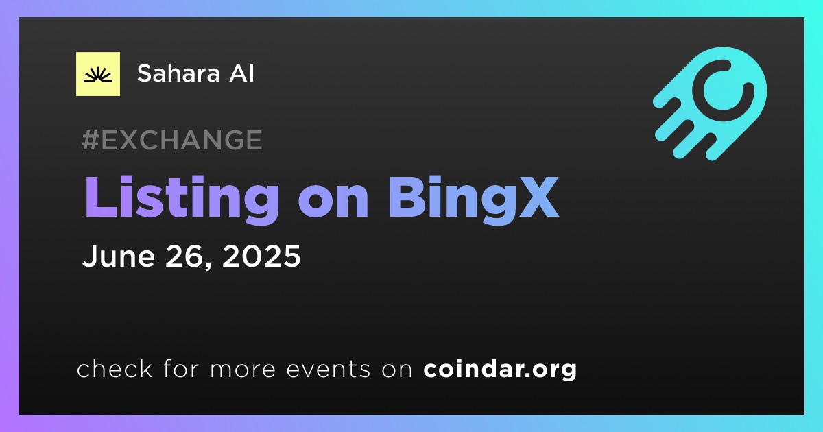 BingX will list Sahara AI (SAHARA) on June 26th at 12:00 UTC.