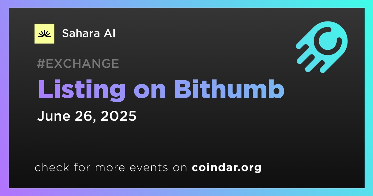 Bithumb will list Sahara AI (SAHARA) on June 26th.