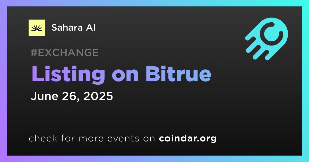 Bitrue will list Sahara AI (SAHARA) on June 26th at 12:00 UTC.