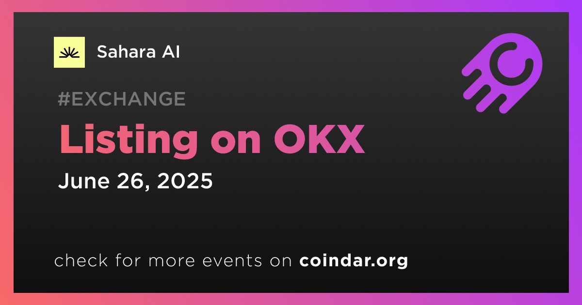 OKX will list Sahara AI under the SAHARA/USDT trading pair on June 26th at 12:00 UTC.