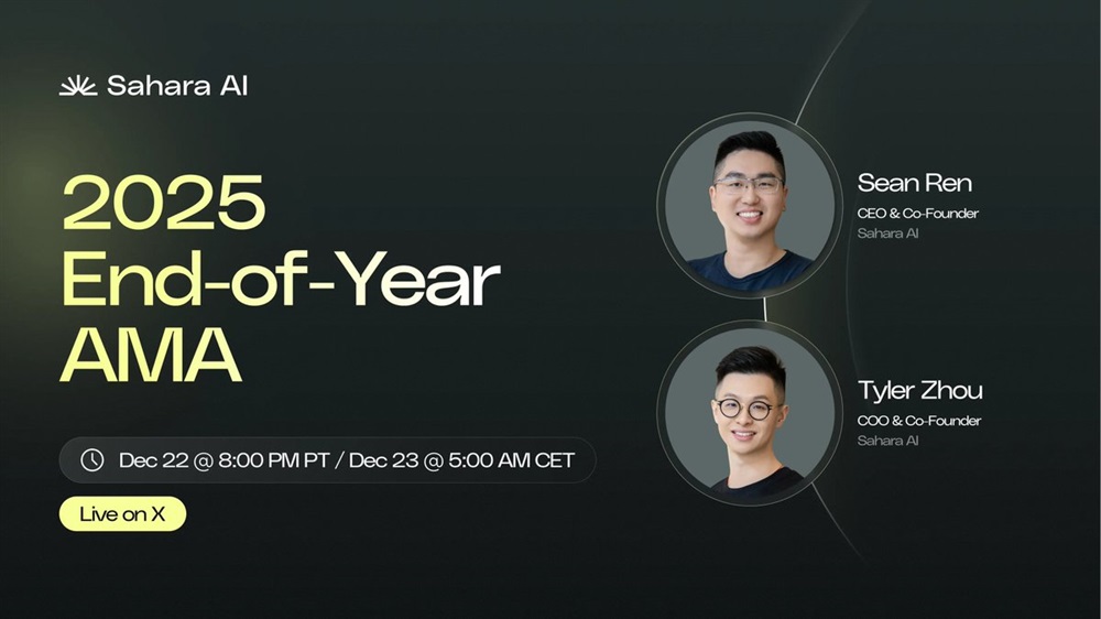 Sahara AI will hold an AMA on X on December 23rd at 04:00 UTC, featuring co-founders Sean Ren and Tyler Zhou. The session will summarise accomplishments achieved during the year and outline forthcoming objectives.