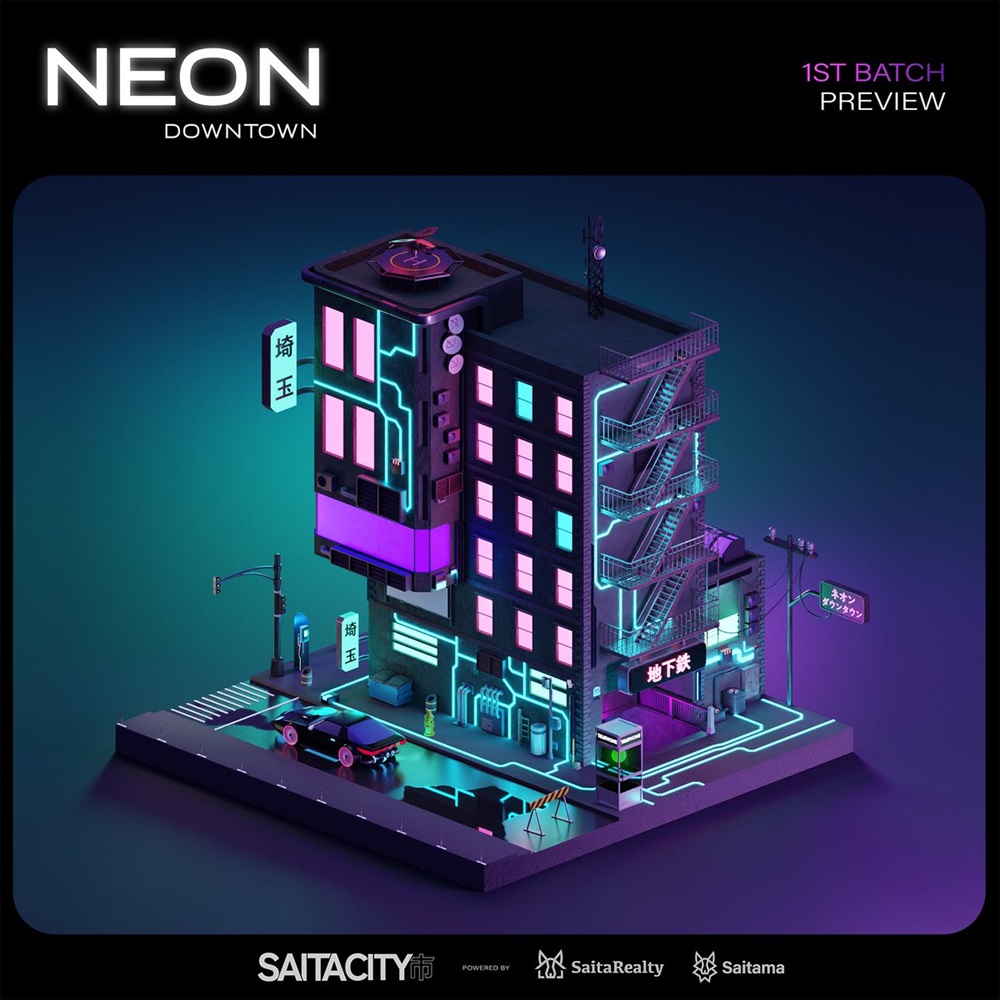 The #SaitaCity #NFT previews are here! The 1st batch will feature 333 unique buildings for #NeonDowntown, one of our neighborhoods.