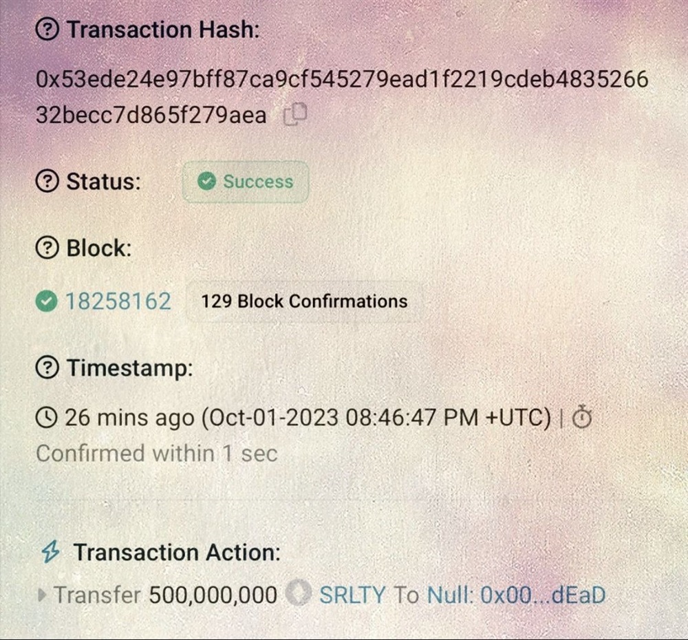 🔥 Just witnessed the heat of the second $SRLTY token burn!