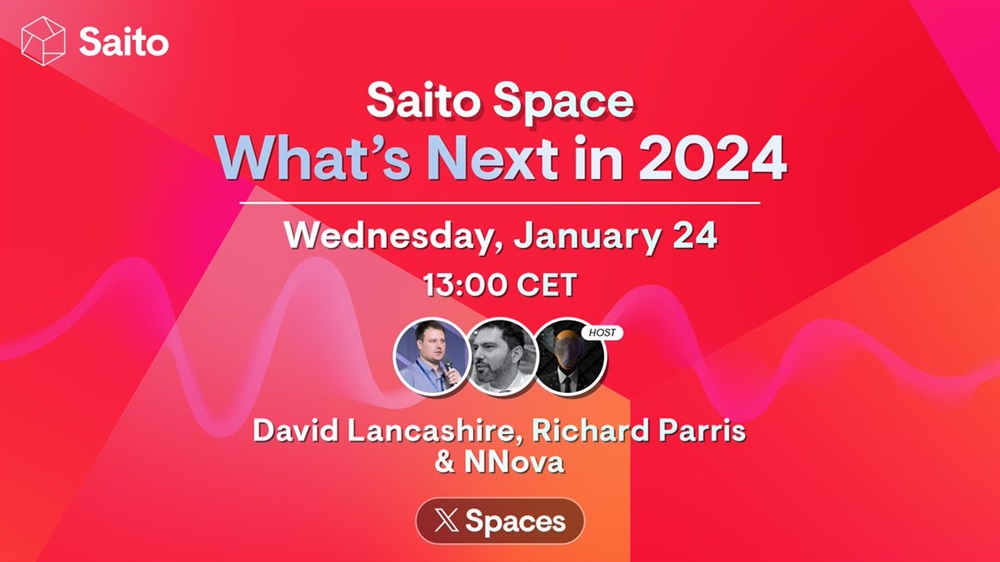 Saito’s founders, David Lancashire and Richard Parris, will host an AMA on X on January 24th at 12:00 UTC. The discussion will focus on the future plans and projections for Saito in the year 2024.