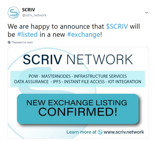 SCRIV coin will we listed at the new exchange. Exchange name will be probably announced several days before listing.