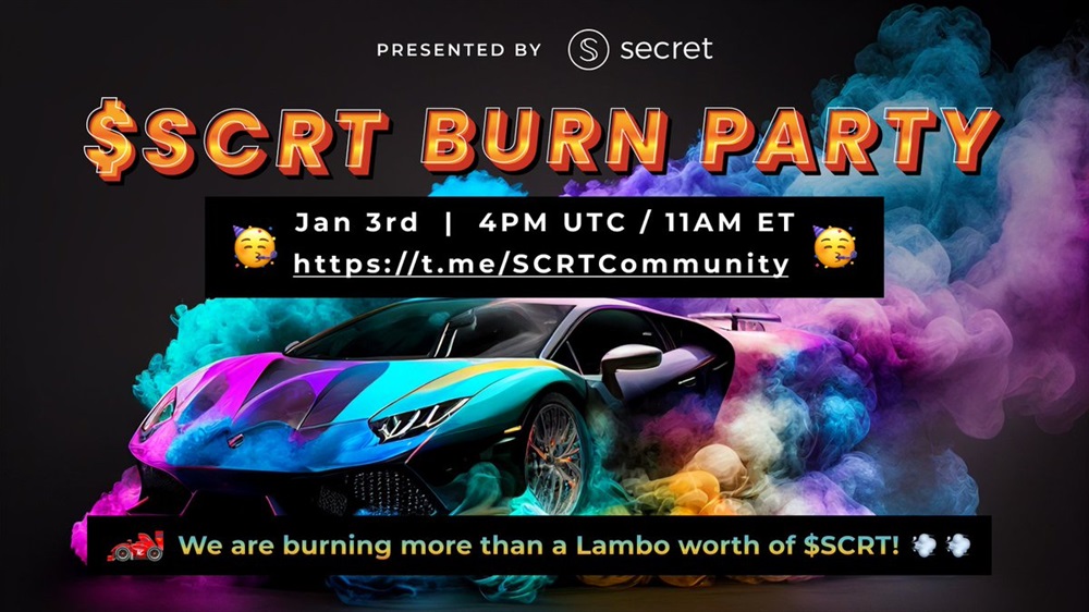 Secret plans to burn a substantial amount of its SCRT tokens, equivalent to the value of a Lamborghini on January 3rd at 4 PM UTC.