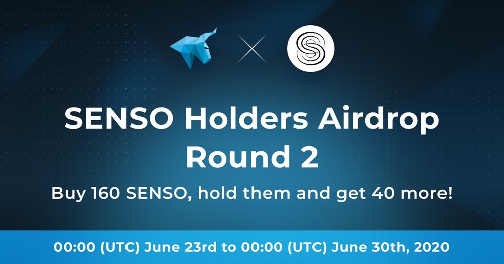 HitBTC is pleased to announce that there will be a 2nd round of a SENSO Holders Airdrop on our platform between 00:00 (UTC) June 23rd to 00:00 (UTC) June 30th, 2020.