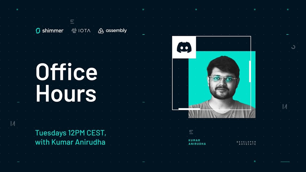 Tune into our Office Hours tomorrow & every Tuesday at @ 12PM CEST! @kranirudha delves into all your #SmartContracts, #Tokenization questions (& more) for #Shimmer, @iota & #Assembly. Don't miss out!
