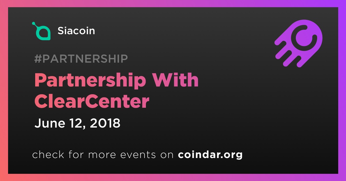 Siacoin SC: Partnership With ClearCenter