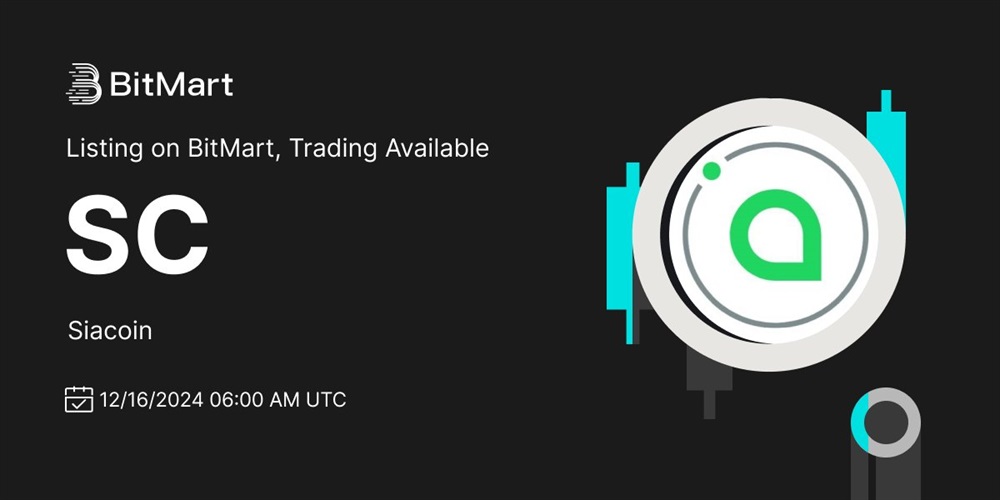 BitMart will list Siacoin (SC) on December 16th. The trading pair for Siacoin on this exchange will be SC/USDT.