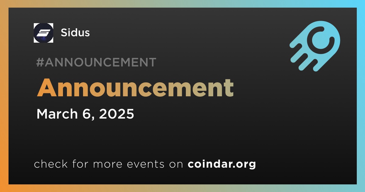 Sidus will host a special event, an announcement will be on March 6th at 13:00 UTC.