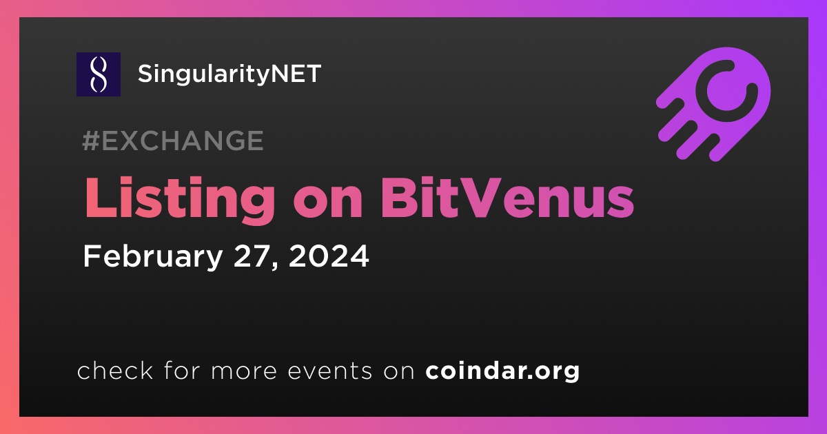 BitVenus will list SingularityNET (AGIX) on February 27th.